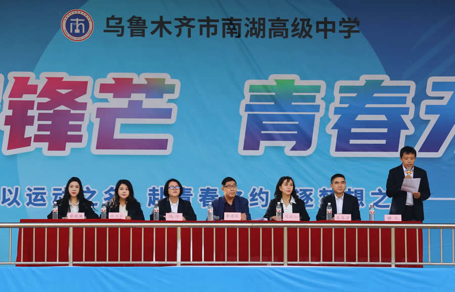 新疆科技教育集团党委书记黄建新、乌鲁木齐市南湖高级中学党支部书记马平、校长马政红、副书记吴易习、副校长任亚敏、副校长曾现英、副校长曹龙出席开幕式。领导们的到来,充分彰显了学校对校园体育文化建设的高度重视,也激励着全体师生以饱满的热情投入这场青春盛会。
