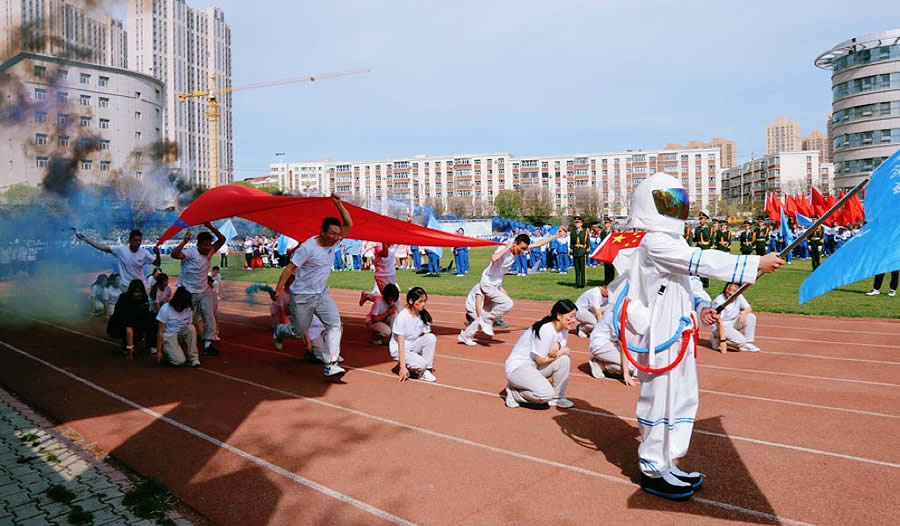 开幕式上,护旗队英姿飒爽,各班方队创意十足,以特色服饰、动感舞蹈、响亮口号尽显青春朝气。