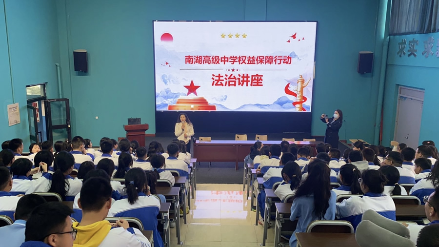 本次法治讲座不仅增强了南湖高级中学学子的自我保护意识和法律观念,也进一步促进了校园法治文化的建设,营造了浓厚的学法、懂法、守法氛围。未来,南湖高级中学也将坚定不移地继续开展各类法制讲座,持续为青少年的健康成长保驾护航。让我们共同期待更多精彩的法治教育活动在校园中绽放光彩,为 “石榴籽行动” 增添更多温暖而有力的篇章。